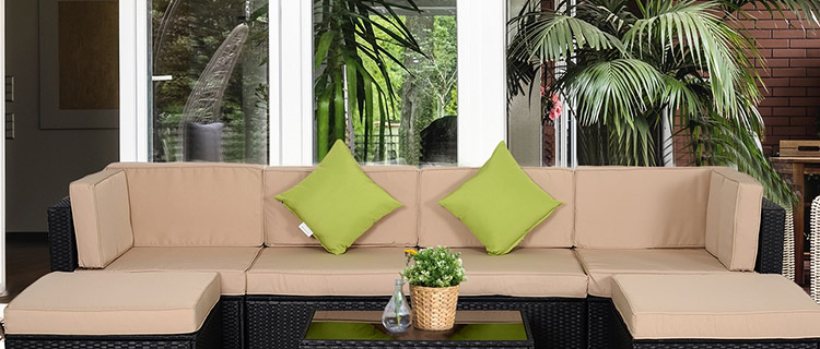 Outsunny Conjunto Muebles de Jardín Ratán 7 Piezas Set de Sofás Patio con 1 Mesita Almohada y Cojín Incluido Marco Acero Resistente Intemperie UV para Exterior Marrón