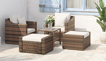 Outsunny Conjunto de Muebles de Jardín de Ratán 6 Piezas Sofá Doble Sofá de 3 Plazas 2 Sillones Individuales 2 Mesas Auxiliares con Almacenamiento y Cojines Acolchados para Exterior Marrón y Crema