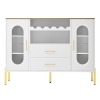 Aparador con frentes de vidrio, botellero y amplio espacio de almacenaje, 120x38x90 cm, Blanco