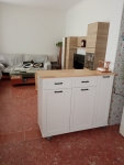 Es pequeño pero entra bastantes cosas. Es pesada por lo que al abrir los cajones no se mueve del sitio. Es preciosa y solo he tardado como una hora y media en montarla y ponerla en su sitio. Los railes son de los buenos, deslizan bien y parece que pueden aguantar tiempo bien.