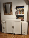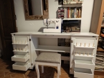 Encantada con mi mesa de costura, Buena relación calidad-precio, siguiendo las instrucciones se monta estupendamente. Parece bastante robusta y fácil de manejar con las ruedas . Estoy tan contenta con ella que comparto las fotos sin tener terminado de montar el cuarto de costura.