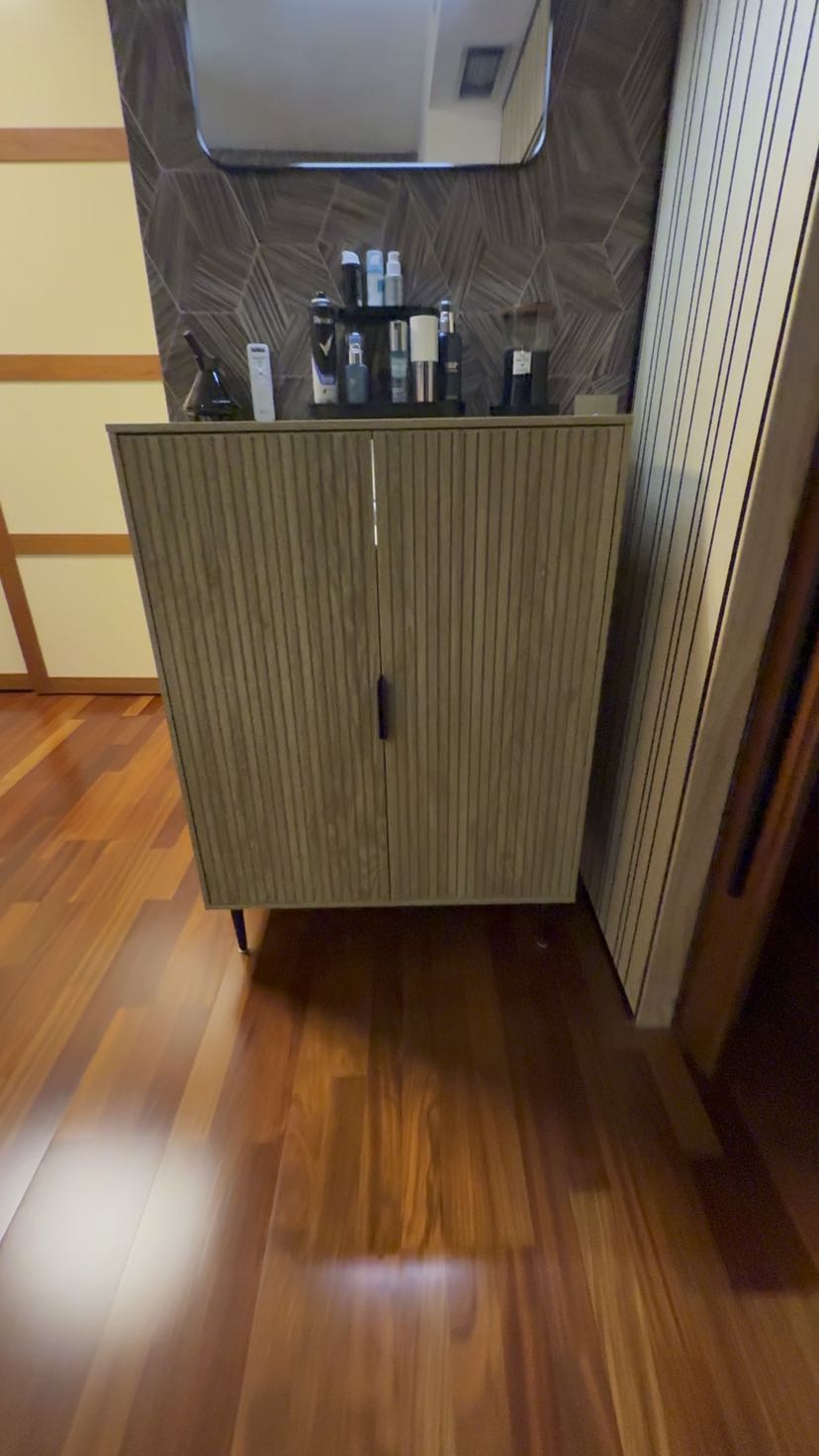 muy fácil de montar y con puertas correderas que ahorran espacio. Diseño hermoso y moderno; y nos quedó muy bien en ese rinconcito