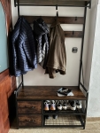 Aunque el espacio sea reducido, se puede sentir la magia de la Navidad. Un zapatero elegante y un perchero con banco organizan la entrada, mientras un pequeño árbol de Navidad y un pueblo navideño iluminado aportan encanto y espíritu festivo. Un toque de alegría y tradición que convierte cualquier entrada en un espacio acogedor y lleno de Navidad.