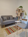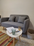 Es el lugar ideal para descansar con comodidad, ya sea leyendo o relajándote, mientras tu perro también tiene su propio espacio al lado, en una cama cómoda de cuero sintético. Un rincón sencillo y funcional, pensado para compartir momentos de calma juntos