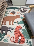 La alfombra tiene una textura borreguito, es suave y la calidad es excelente