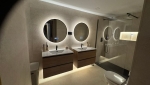 Confort y organización en el mismo espacio. La cama ocupa el papel central, acompañada de mesitas de noche prácticas y dos cómodas que ofrecen una amplia capacidad de almacenaje. La combinación de madera clara y tonos neutros crea un ambiente moderno, equilibrado y funcional