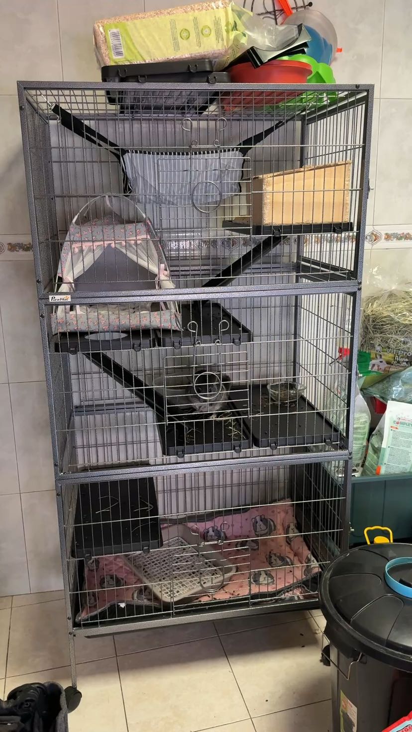 me encanta y a mi chinchilla tambien, es muy grande y espaciosa, yo la recomiendo mucho, y sobre todo aosom, todas las jaulas las he comprado aqui y son estupendas