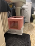 A mis gatas les encanta, además de que no sale absolutamente nada de olor ya que queda muy cerrado. Es mucho más fácil de limpiar que un arenero convencional. Estoy encantada. El color es precioso, y el material es un plástico más duro que otro areneros que he tenido.