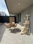 Esta sala de estar está diseñada para acogeros a todos, incluido tu amigo felino. El divertido conjunto de estanterías para escalar ofrece a tu gato un espacio para ejercitarse y explorar, mientras que el comedero y el bebedero garantizan que siempre tenga comida y agua a su disposición. Con un ambiente funcional y acogedor, es el espacio ideal para que te relajes y compartas momentos con tu mascota, sin renunciar al confort.