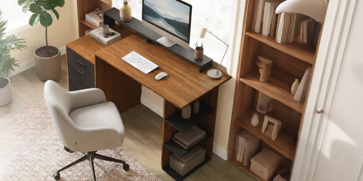 No siempre es posible tener un despacho en casa, pero crear un espacio de trabajo en el salón es una solución práctica para el día a día. Un escritorio con iluminación adecuada permite trabajar con mayor comodidad, mientras que la silla de oficina y el reposapiés ayudan a mantener una mejor postura. Con soluciones de almacenaje integradas, es posible mantener todo organizado y adaptar el salón a un auténtico home office funciona