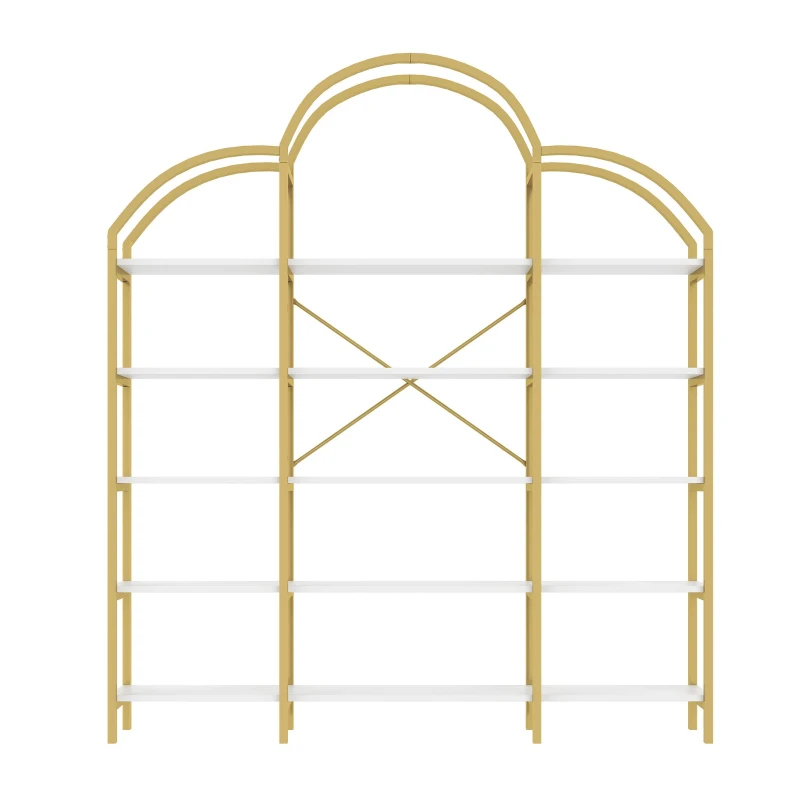 Estantería de estilo sencillo, cinco niveles de almacenamiento, forma única de nube, 170x26x190 cm, Oro + Blanco
