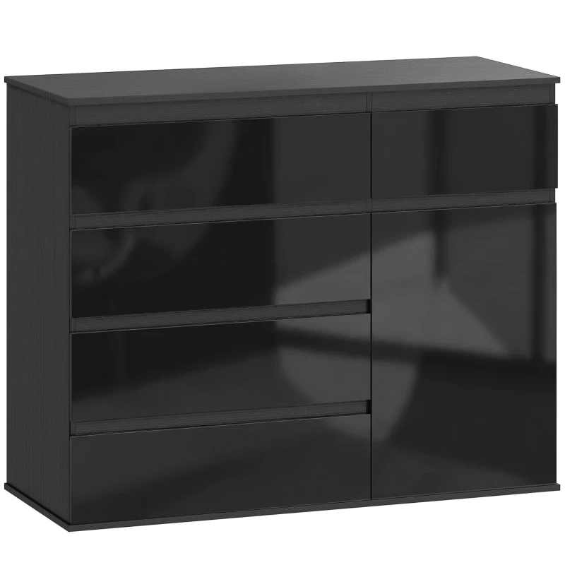 HOMCOM Aparador moderno, aparador de almacenamiento con 5 cajones, balda ajustable, puerta con cierre suave, negro alto brillo(m-2)