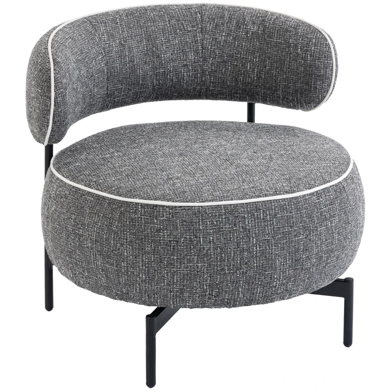 HOMCOM Butaca de Salón con Asiento Giratorio Tapizado en Lino Asiento Amplio Relleno Grueso Patas de Metal Gris Oscuro