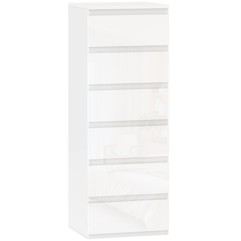 HOMCOM Cómoda de Dormitorio con 6 Cajones Estrecha Sinfonier Ahorro Espacio 40x35x109 cm Blanco Brillo