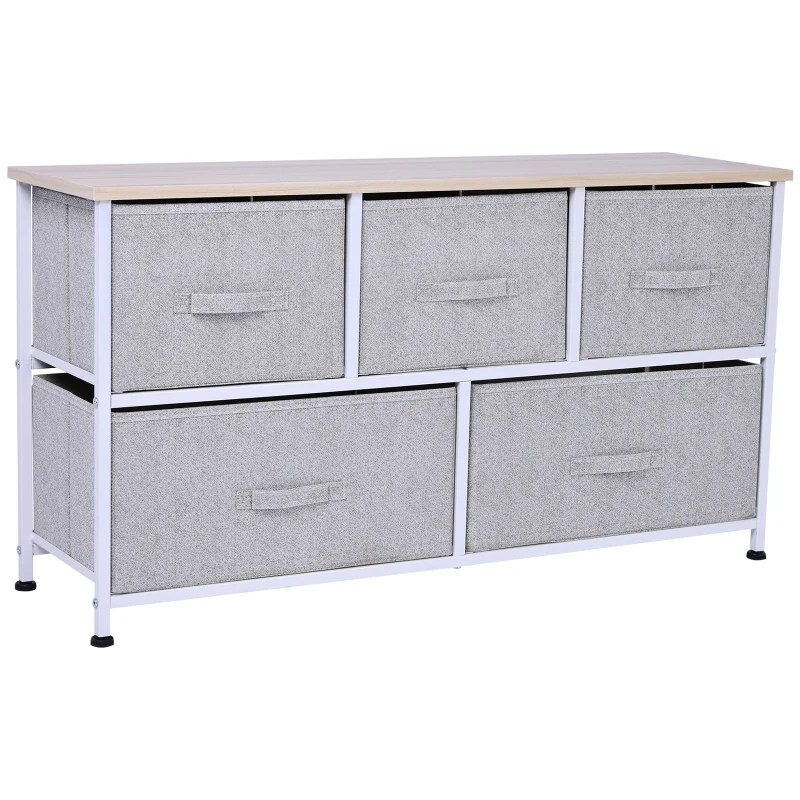 HOMCOM Cómoda con 5 Cajones de Tela Cómoda para Dormitorio Marco Metálico 100x30x54 cm Gris