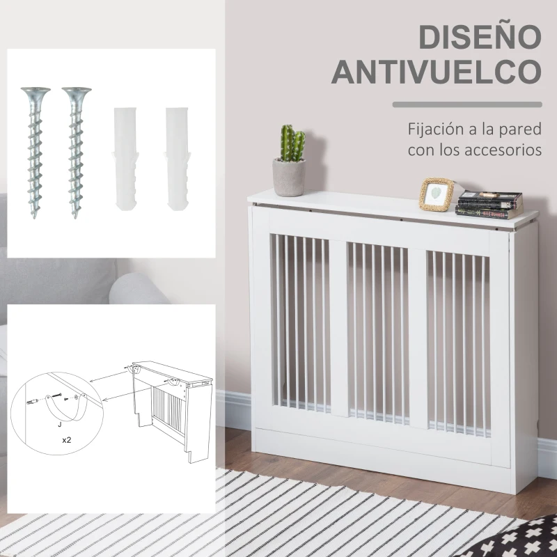 HOMCOM Cubierta de Radiador Blanco 90x18x84 cm Cubre Radiador de MDF Diseño Moderno Estante para Radiador Vertical para Salón