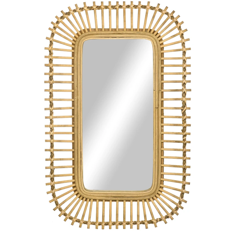 HOMCOM Espejo de Ratán Decorativo de Pared Espejo Colgante Rectangular para Salón Dormitorio Entrada Pasillo 75x48 cm Natural