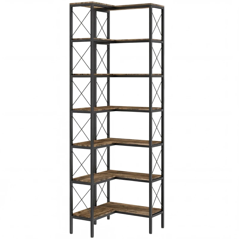 HOMCOM Estantería en L de 6 niveles, estantería esquinera independiente con marco metálico, marrón rústico
