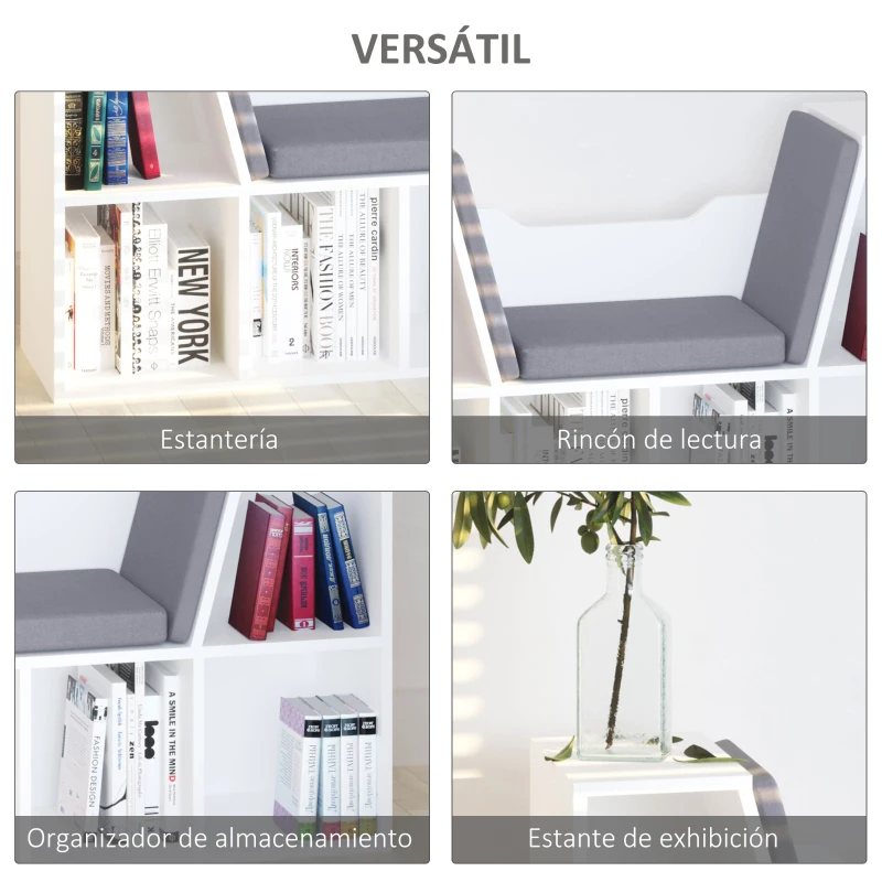 HOMCOM Estantería Librería con Asiento 6 Cubo Librería Original Infantil Zapatero con Cojín Estante con Banco Multiusos 102x30x61cm