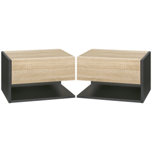 HOMCOM Juego de 2 Mesitas de Noche Flotantes Mesitas de Noche Colgantes con 1 Cajón y Estante Abierto 46x30x30cm Roble y Negro