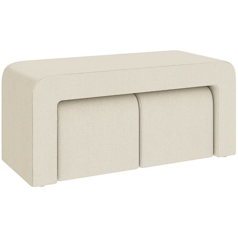 HOMCOM Juego de 3 Bancos Zapateros Grande y 2 Pequeños Modernos de Pana Diseño Compacto Mesa Auxiliar 104x44x48 cm Crema(m-4)