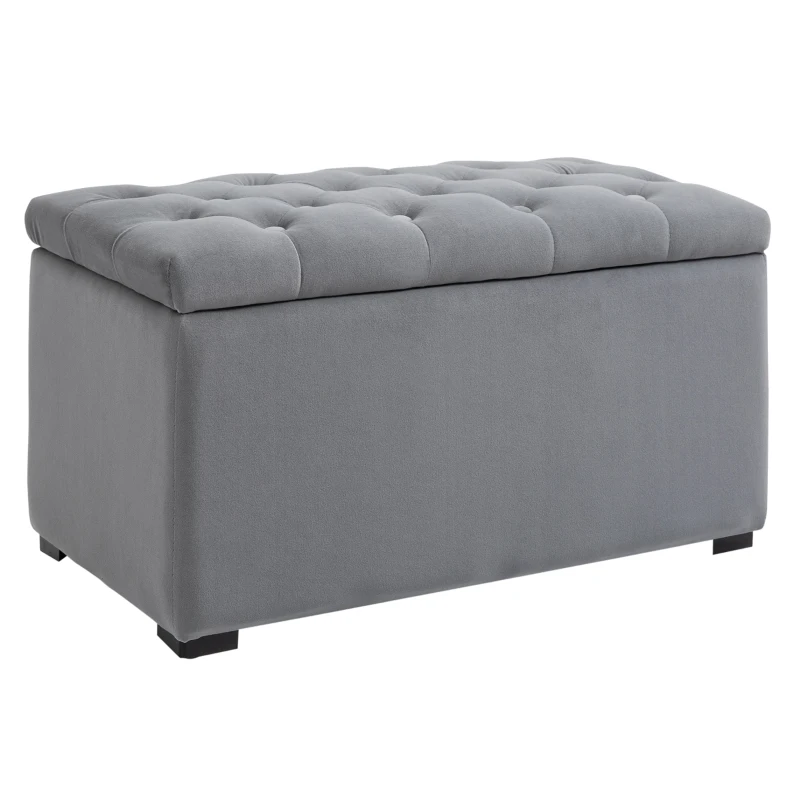HOMCOM Juego de 3 piezas con almacenamiento, 2 puff adicionales, banca tapizada, reposapiés, caja de almacenaje, reposapiés, soporta hasta 130 kg