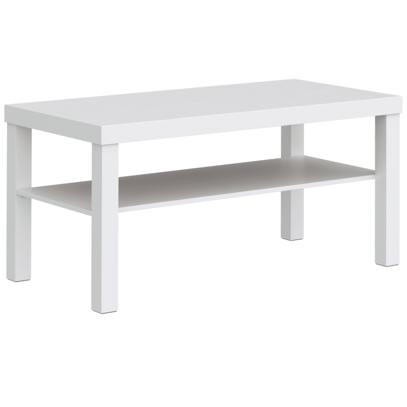 HOMCOM Mesa de Centro Mesa de Café para Salón con Estante Abierto Tablero Grueso para Salón Oficina 90x45x44,5 cm Blanco(m-4)