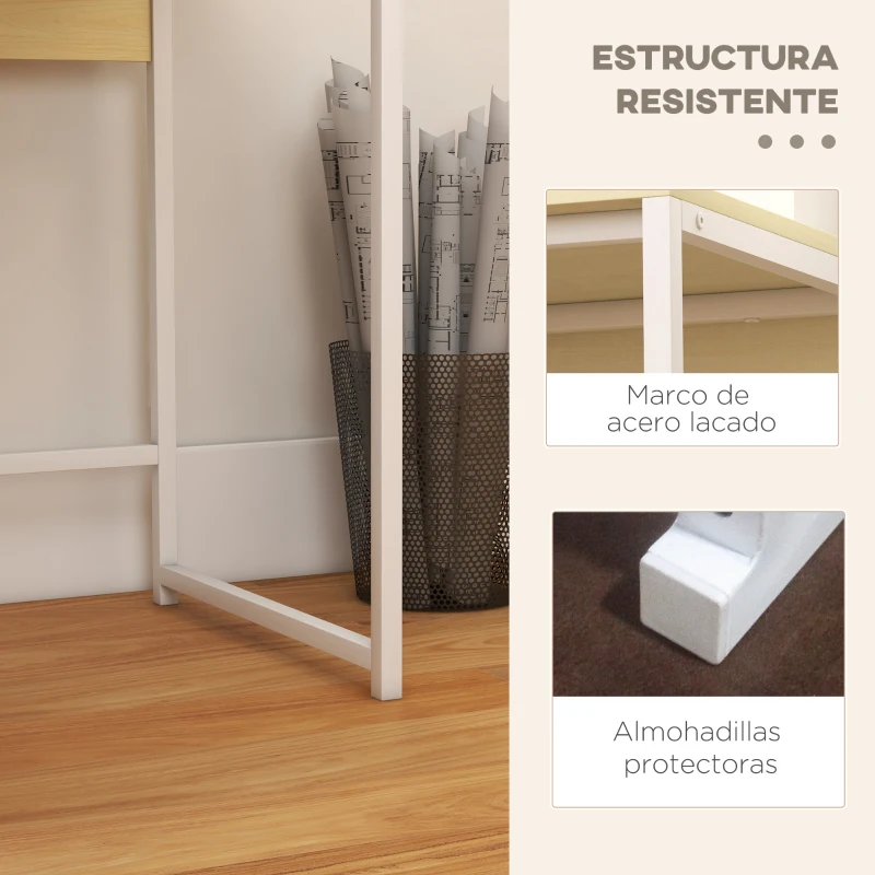 HOMCOM Mesa de Escritorio con Estante de Almacenamiento y 2 Cajones Extraíbles para Oficina Estudio 106x50x89 cm Blanco