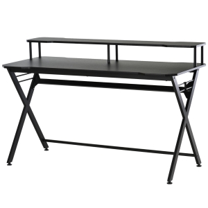 HOMCOM Mesa Gaming 120x60x75 cm Escritorio Ergonómico Gaming Desk para Ordenador PC con Portavasos Gancho para Auriculares y Orificio de Pasacables Efecto de Fibra de Carbono Negro