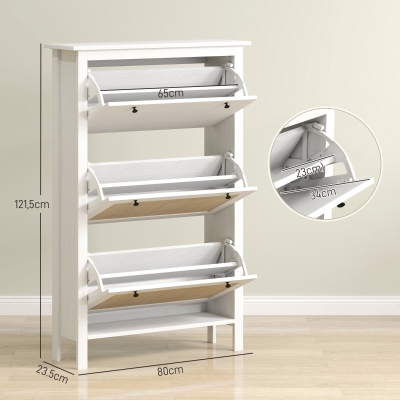 HOMCOM Mueble de zapatos estante de zapatos armario 3 puertas abatibles efecto ratán - en madera Blanco(m-6)