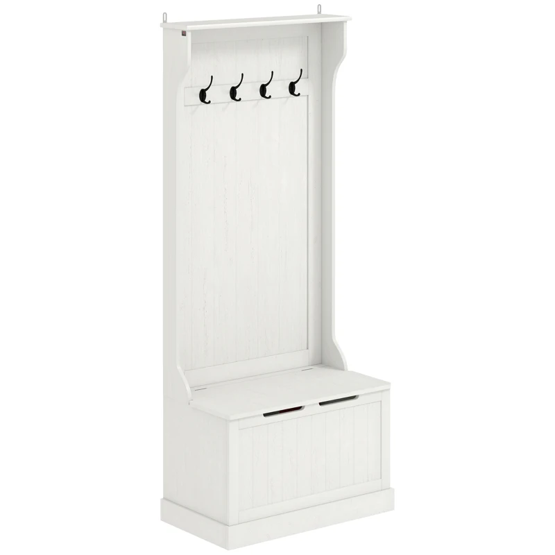 HOMCOM Perchero Zapatero con Banco de Almacenamiento 4 Ganchos Estilo Moderno 71,5x39,5x170 cm Blanco
