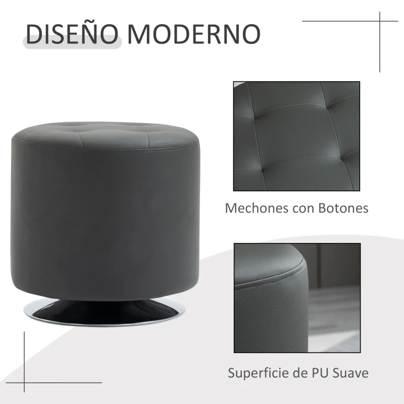 HOMCOM Reposapiés Otomano Giratorio Taburete Puff Redondo Tapizado en Piel Sintético de Estilo Moderno para Dormitorio Entrada Salón Ø45,5x44,5 cm Gris