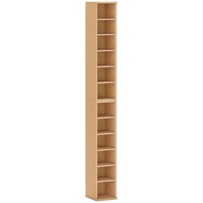 HOMCOM Set de 2 Muebles Porta CD con Estantes Regulables, Estantería para 204 CD Ahorra Espacio, Mueble Porta CD con 12 Compartimentos, para Salón, Dormitorio, Oficina, 21x22.5x88.5cm, Color Madera