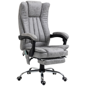 HOMCOM Silla de Oficina con Masaje Calor Lumbar Altura Ajustable e Inclinación Tapizada en Cuero Sintético 66x72x113-121cm Gris