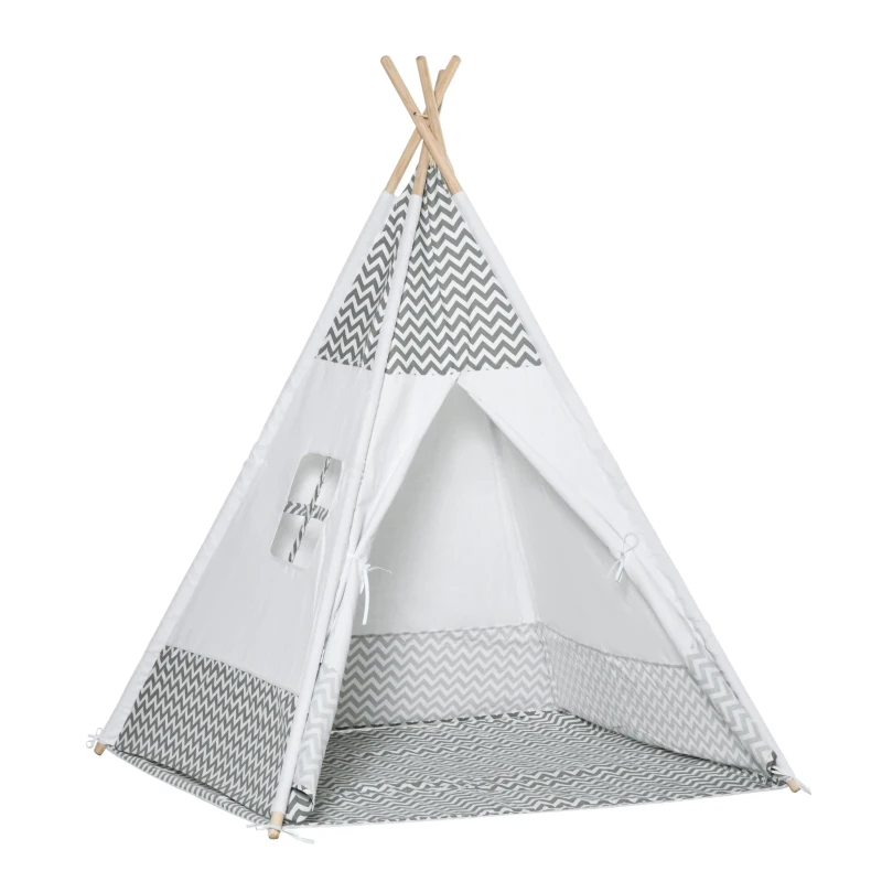 HOMCOM Tienda de Campaña para Niños de +3 Años Tipi Infantil de Madera Portátil con Ventana Colchoneta y Bolsa de Transporte para Interiores y Exteriores 120x120x155 cm Gris