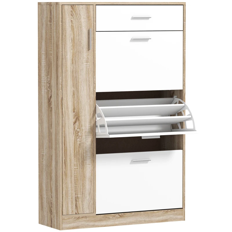 HOMCOM Mueble Zapatero de 3 Puertas para 18-27 Pares de Zapatos Zapatero Moderno con Cajón y Puerta 84x30x132 cm Natural