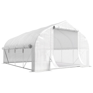 Outsunny Invernadero de Túnel 600x300x200 cm Invernadero de Jardín con Puerta Enrollable 8 Ventanas Cubierta PE 140g/m² y Tubo de Acero para Cultivos Plantas Verduras Verde