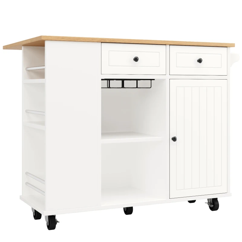 Isla de Cocina con Mesa Abatible y Almacenaje Carro de Servicio Plegable 120x42/76x91,5 cm Blanco