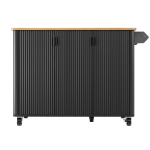 Isla de Cocina Moderna Carrito de Servicio Multifuncional con Espacio de Almacenamiento y Armarios con Puertas de Vidrio 120x30/70x79,5 cm Negro y Natural