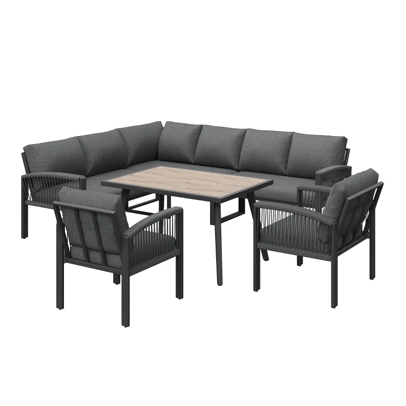 Juego de Muebles de Jardín para 8 Personas Conjunto de Muebles con Cuerda Incluye Cojines de Asiento y Respaldo Gris