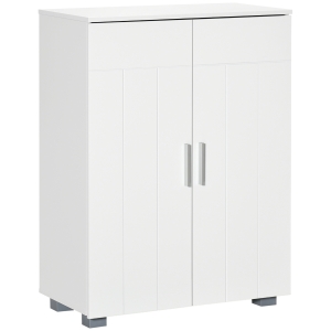 kleankin Armario Auxiliar de Baño con Puertas de Cristal y Estante Ajustable Armario Multifuncional 60x30x108,5cm Blanco
