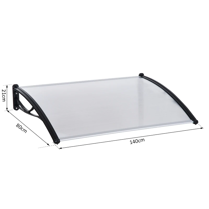 Outsunny Marquesina Techo Canopy para Puertas Ventanas Terrazas Toldo Dosel Placa de Policarbonato 5 mm Transparente Protección contra Sol y Lluvia 140cm