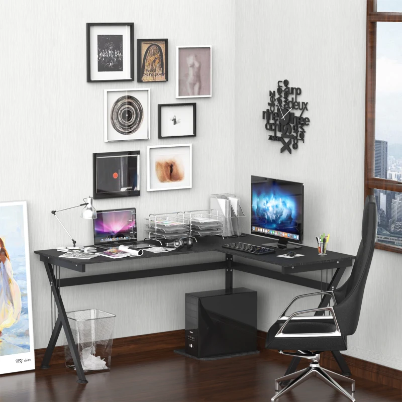 HOMCOM Mesa de Ordenador PC de Tabla de Madera Mesa Esquinera de Angulo para Oficina Dormitorio Hogar Escuela