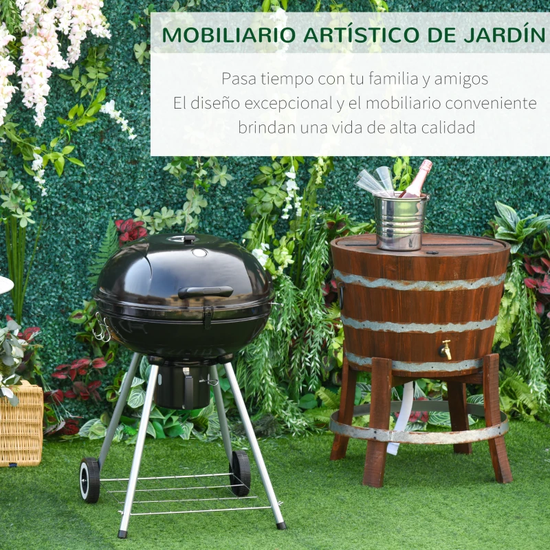Outsunny Barbacoa de Carbón BBQ Picnic Ahumador Parilla con Termómetro Jardín Exterior Acampada Parilla de Carbón Vegetal con Ruedas y Estante Tapa y Tazón Esmaltados