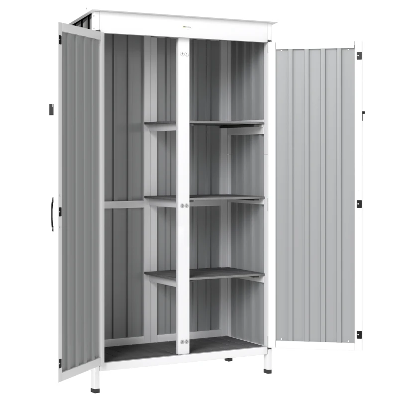 Mantén tu jardín, terraza o patio siempre ordenado con este armario de jardín exterior. Su diseño vertical aprovecha el espacio al máximo, mientras que los estantes ajustables facilitan una organización práctica. El techo impermeable y la base elevada protegen del clima, y su estructura robusta garantiza estabilidad y durabilidad para un uso prolongado en exteriores.