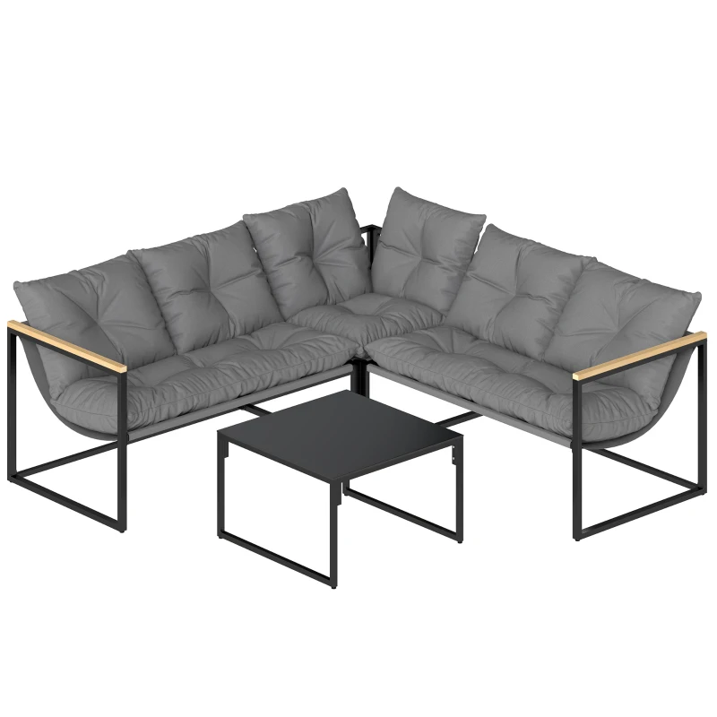 Outsunny Conjunto de Jardín Exterior con Cojines Gruesos 2 Sofás de 2 Plazas Sofá de Esquina y Mesa de Centro de Vidrio Gris(m-4)