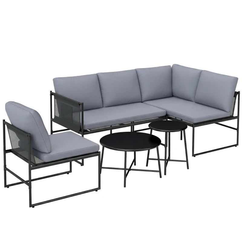 Outsunny Conjunto Lounge para Jardín 4-5 Personas con Sofá 2 Plazas, Mesa de Centro, Silla, Cojines gruesos lavables