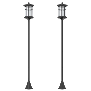 Outsunny 2 Farolas Solares de Jardín con Luz LED Blanca 6000K IP44 Set de 2 Farolas de Exterior 18,5x18,5x129 cm Negro