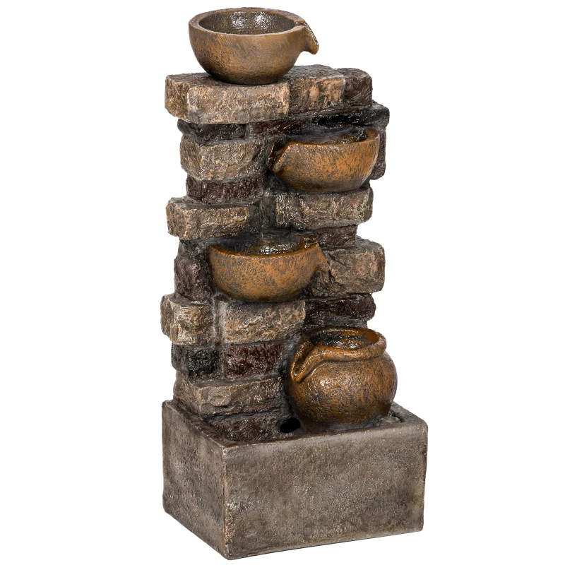 Outsunny Fuente de Jardín con Iluminación LED Bomba Fuente Decorativa en Cascada de 5 Niveles Flujo Ajustable Marrón Rústico