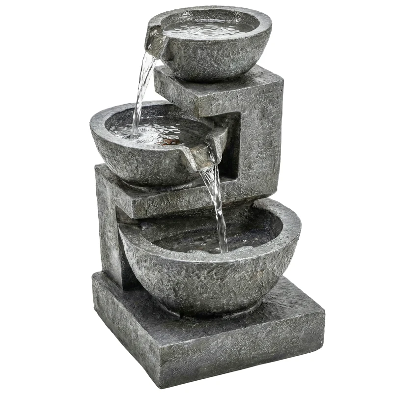 Outsunny Fuente de Jardín con Iluminación LED y Bomba Fuente Decorativa en Cascada de 3 Niveles 40x37x61 cm Multicolor